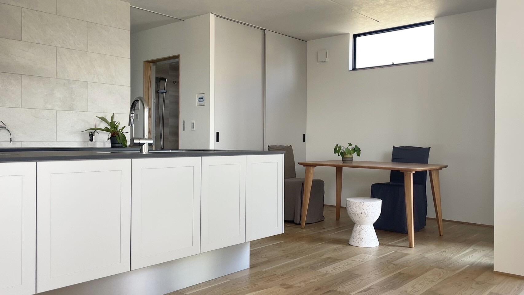 まるでホテルのスイートルームのような1階。LDKと畳コーナーを合わせると、なんと!!26.6帖!タイル貼りテラス~庭へとつながるリビングはこれ以上とない開放的な空間となっております。