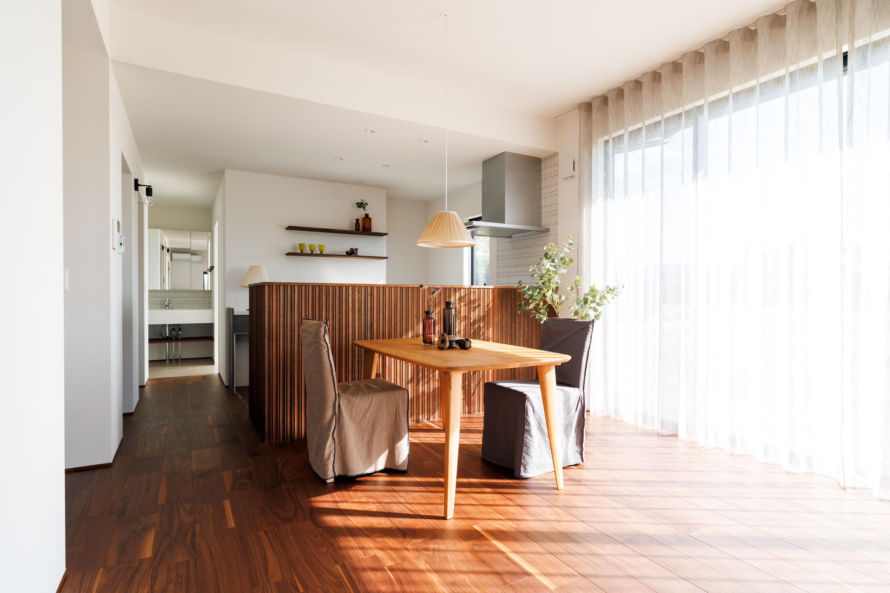 白と木を基調にした温もりあるデザインで、インテリアのプロが手がけた上質な空間が広がります。